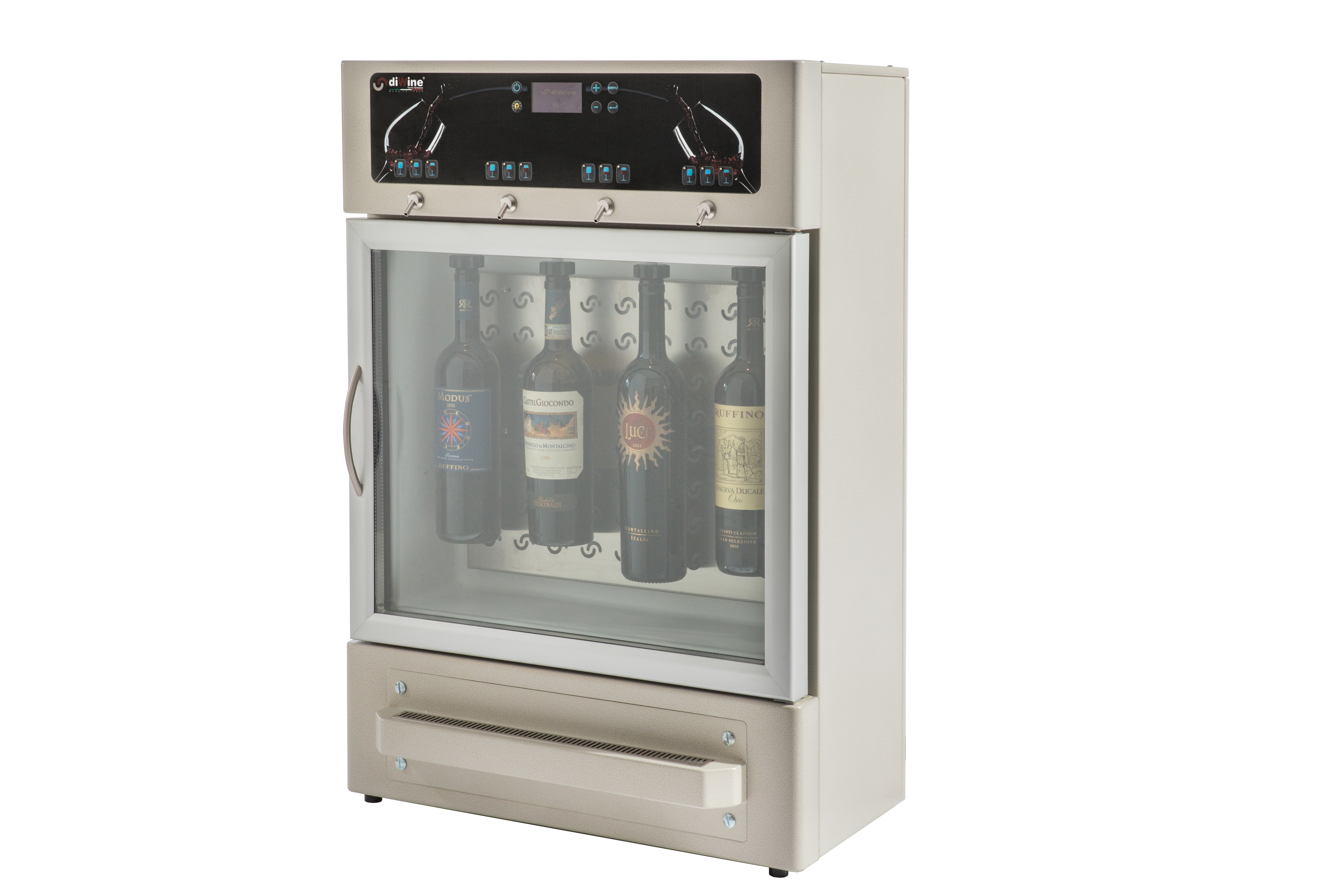 I dispenser diWine® permettono erogare il vino direttamente dalla bottiglia al bicchiere tramite l’inserimento nel sistema di azoto alimentare (gas inerte che evita le normali alterazioni del vino dovute all’ossigenazione).